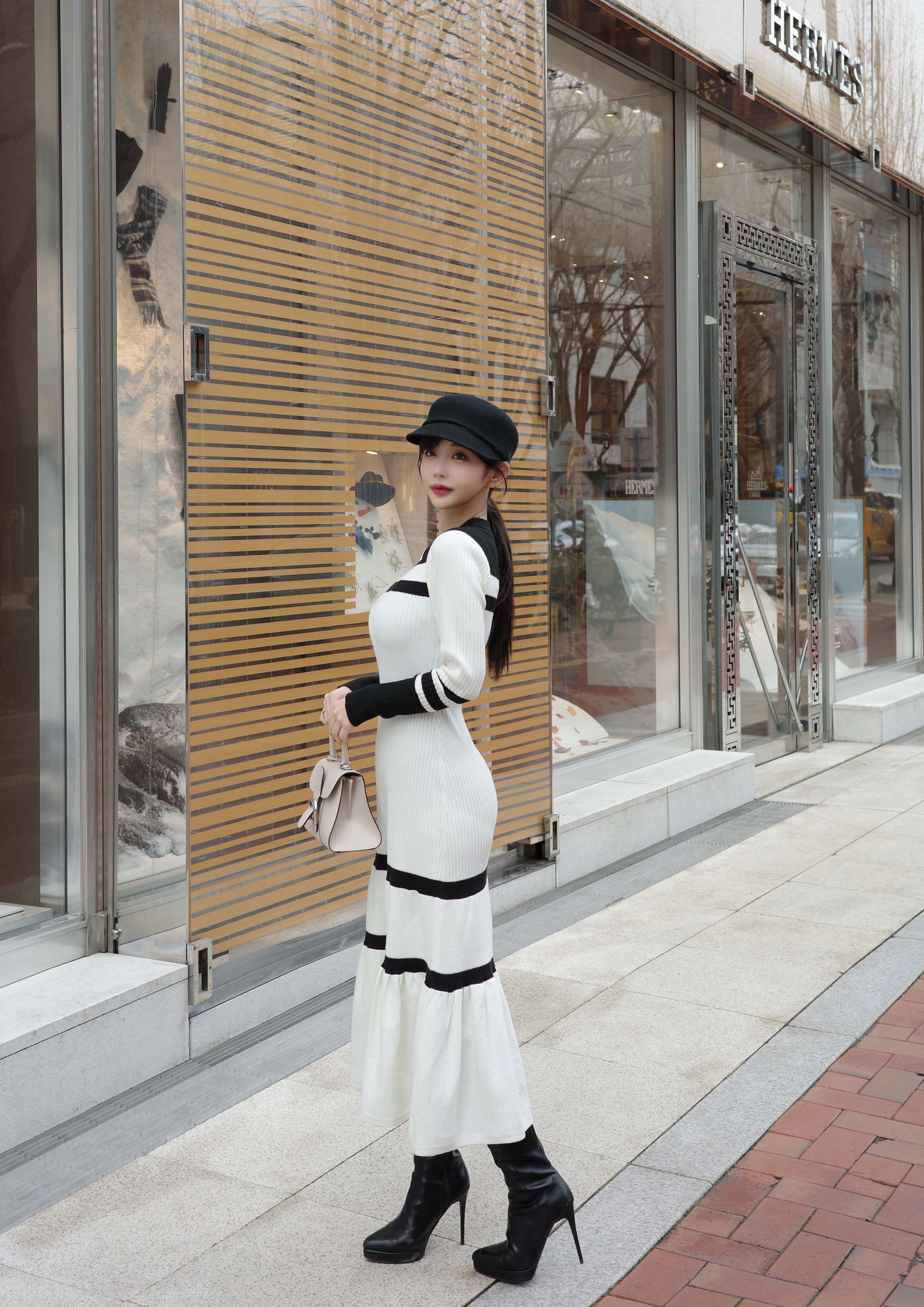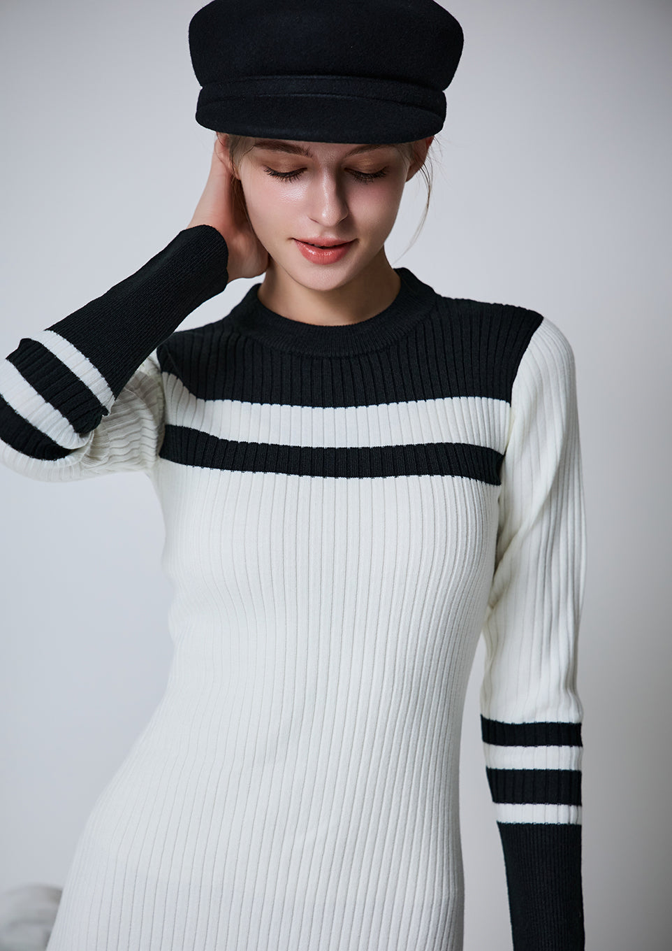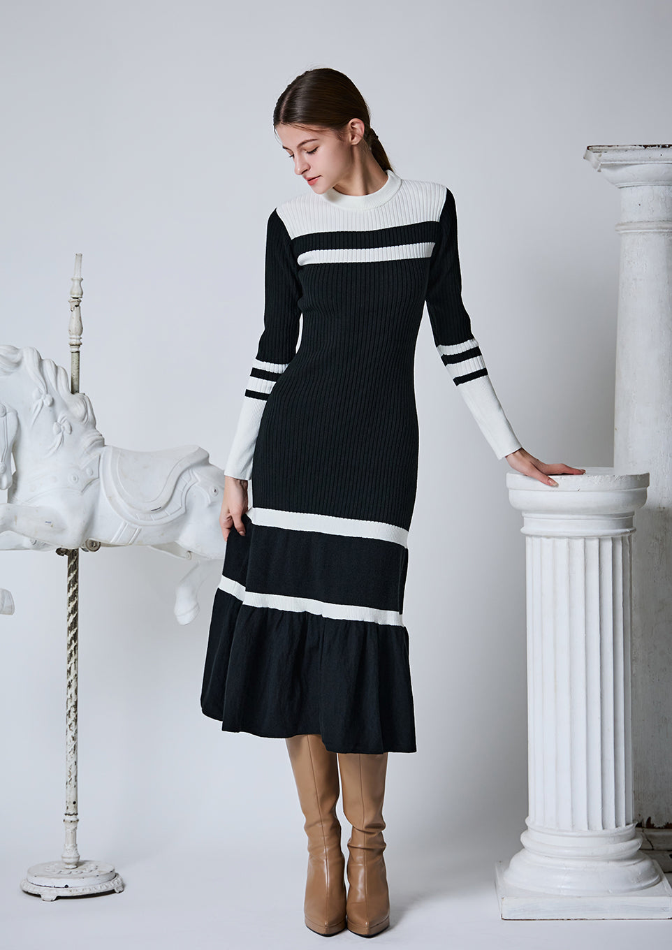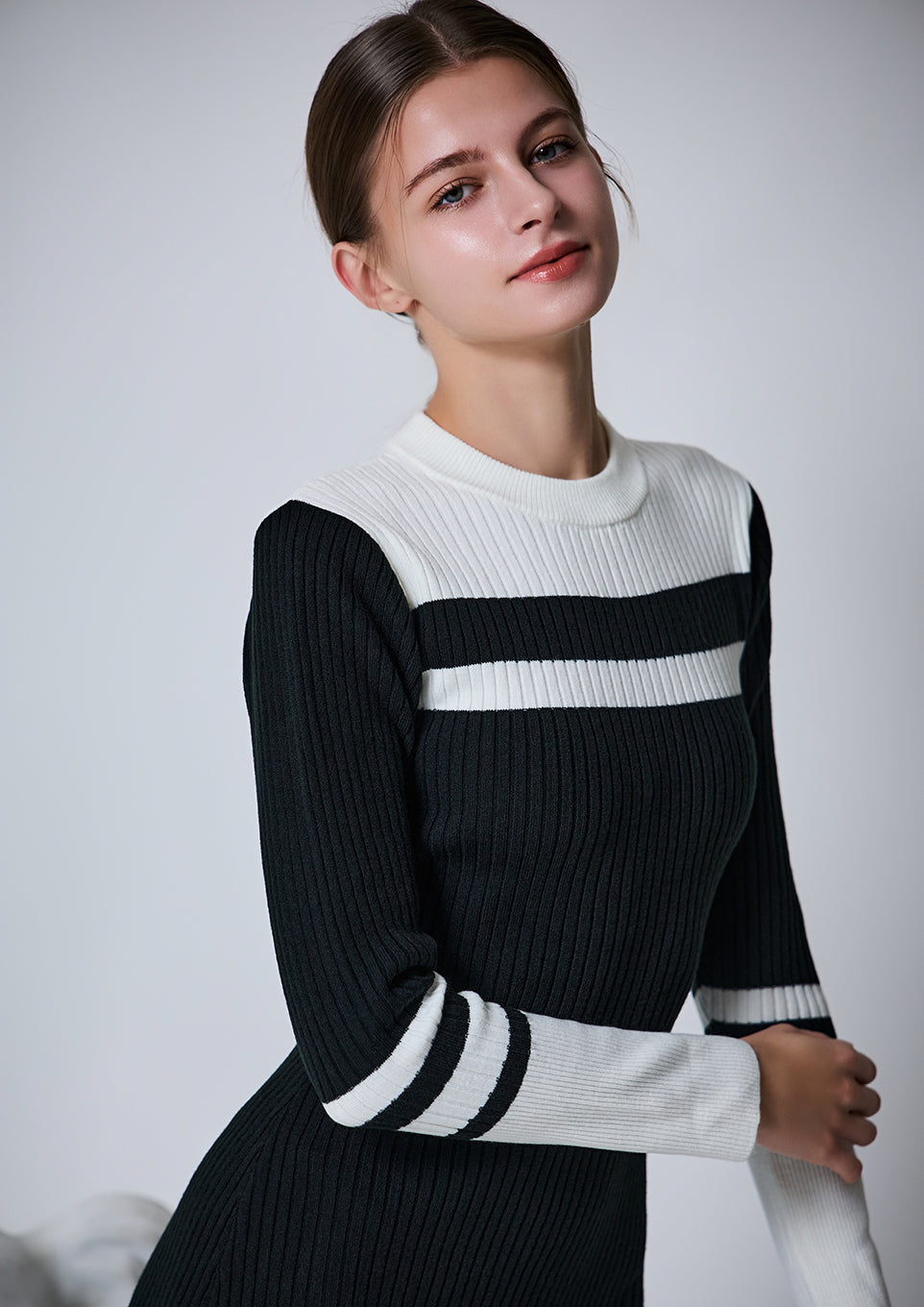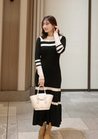 Bicolor rib knit dress