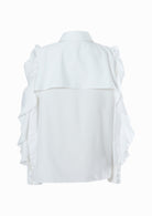 アンブレラヨークや袖のフリルなど可憐なディテールをふんだんに詰め込み、後ろ姿まで魅力的な印象を残す1着です。